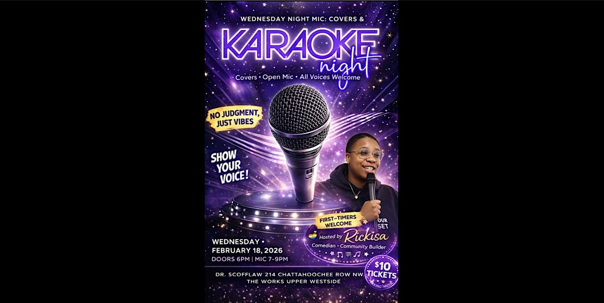 Hosted by Rickisa Owens, comedian and community builder, this event centers inclusivity, encouragement, and genuine community. Come to take the mic, support other performers, or simply enjoy the vibes. No experience required! Just bring your voice and your energy.
