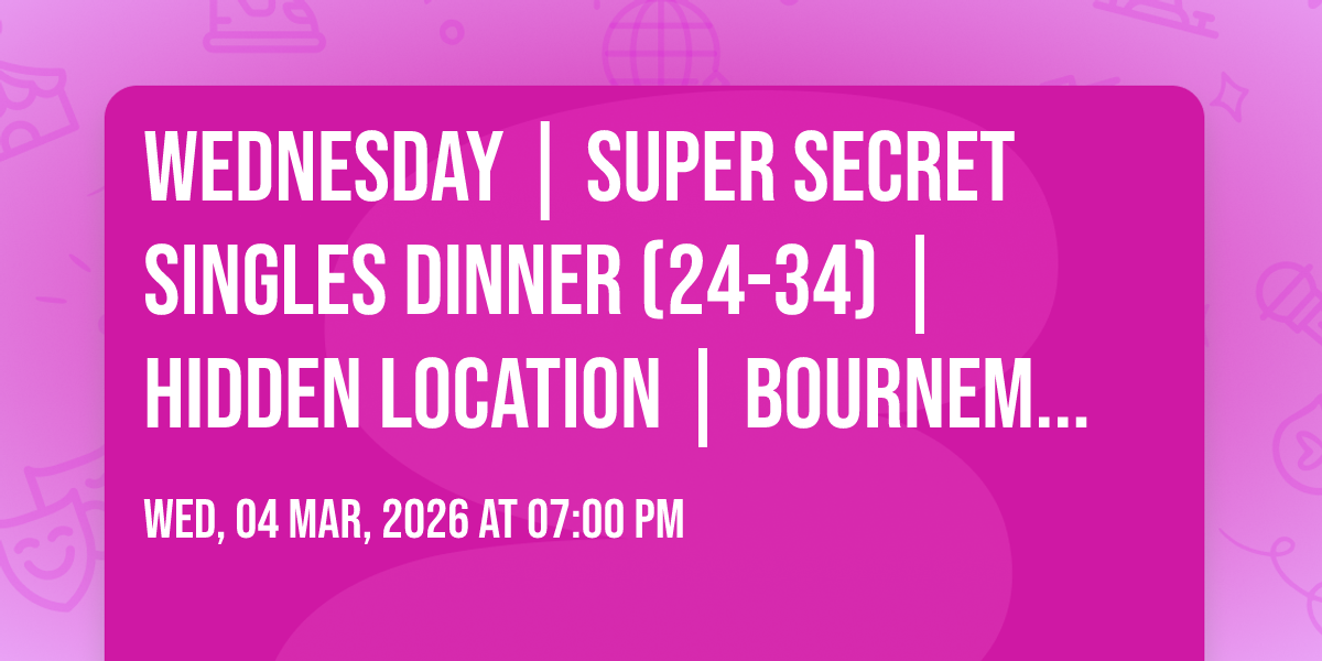 Wednesday | Super Secret Singles Dinner (24-34) | Hidden Location | Bournemouth