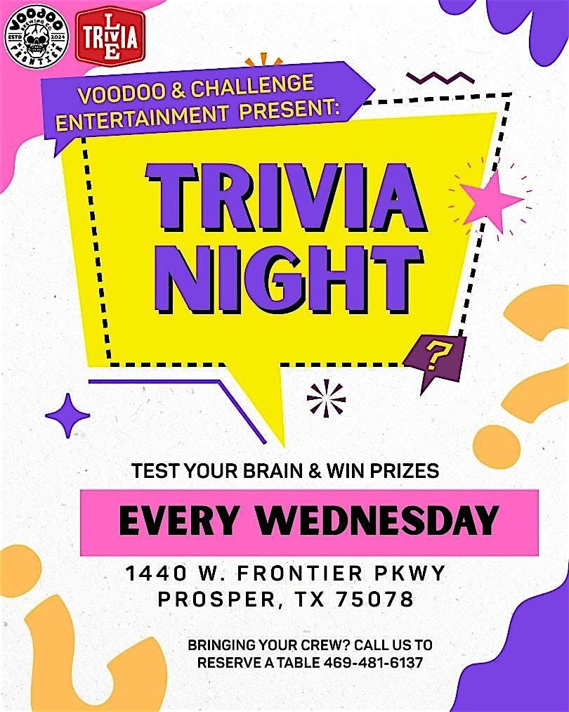 Every Wednesday at 7 PM, join us for a fun-filled, brain-boosting showdown where laughs are loud, and the competition is real. Grab your smartest friends — or build your team here — and battle through eclectic rounds covering pop culture, history, and everything in between! We’ve also got drink specials, delicious food, and great prizes for our top teams.