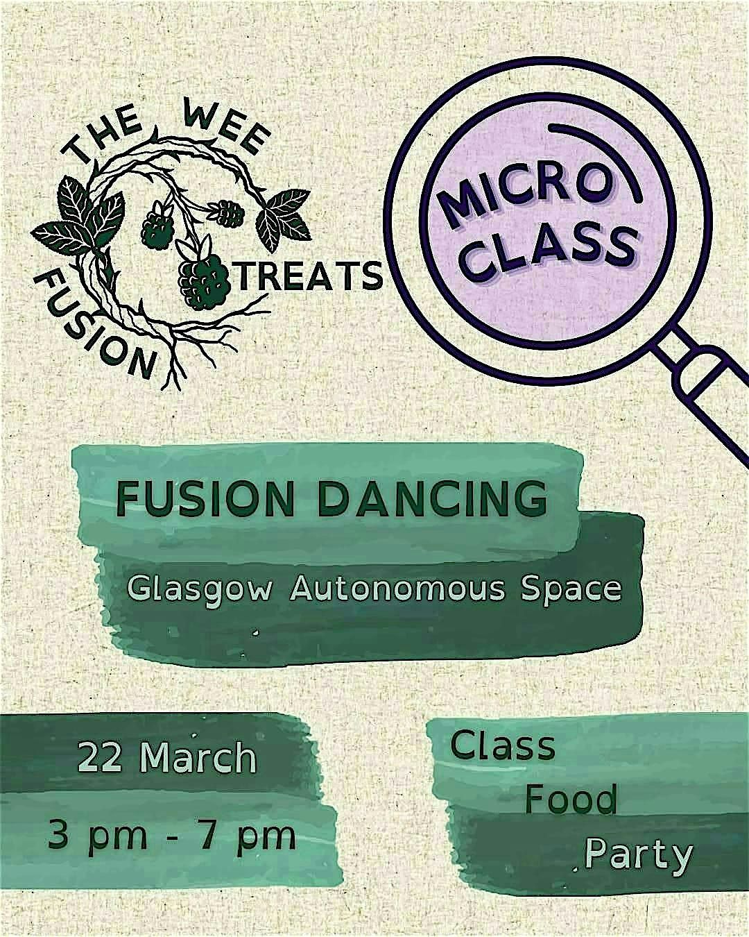 The Wee Treats are the perfect Sunday afternoon get-together. Andy and Bracken are teaching a fusion class on leading and following skills 3-4pm, with social dancing 4-7pm. We'll provide some warm food to give you dancing energy (there is always a vegan and gluten free option).