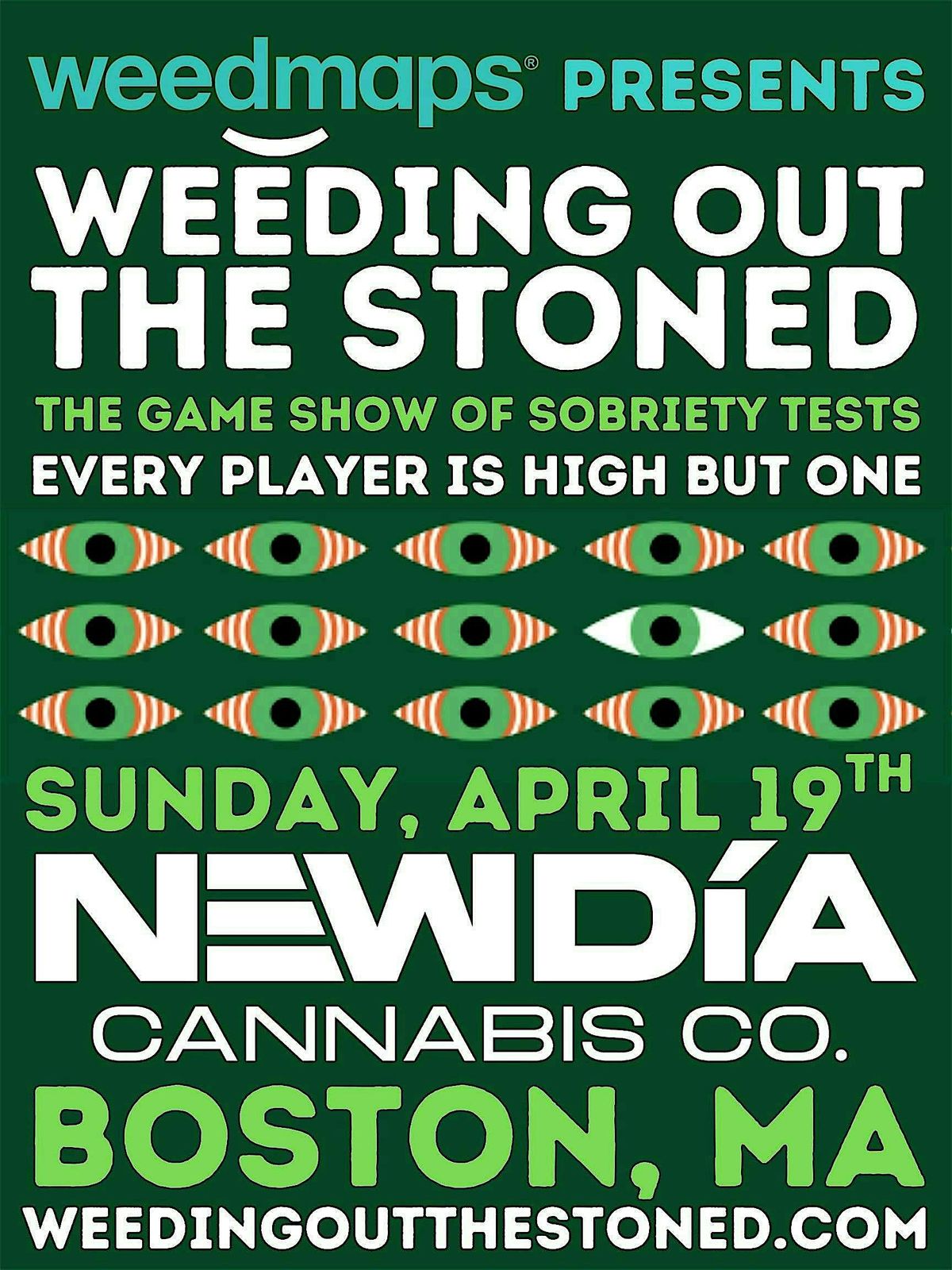 Weeding Out The Stoned is The Game Show of Sobriety Tests and it's back in Boston for the annual 420 Edition! Eight players enter the game. All but one of them are stoned! It's up to all of us to unmask the anonymous sober person so everyone can win sweet prizes. Host Alex Grubard seeks audience testimony, plays mind games and administers sobriety tests of New England's premier comedians, influencers and other potheads.
