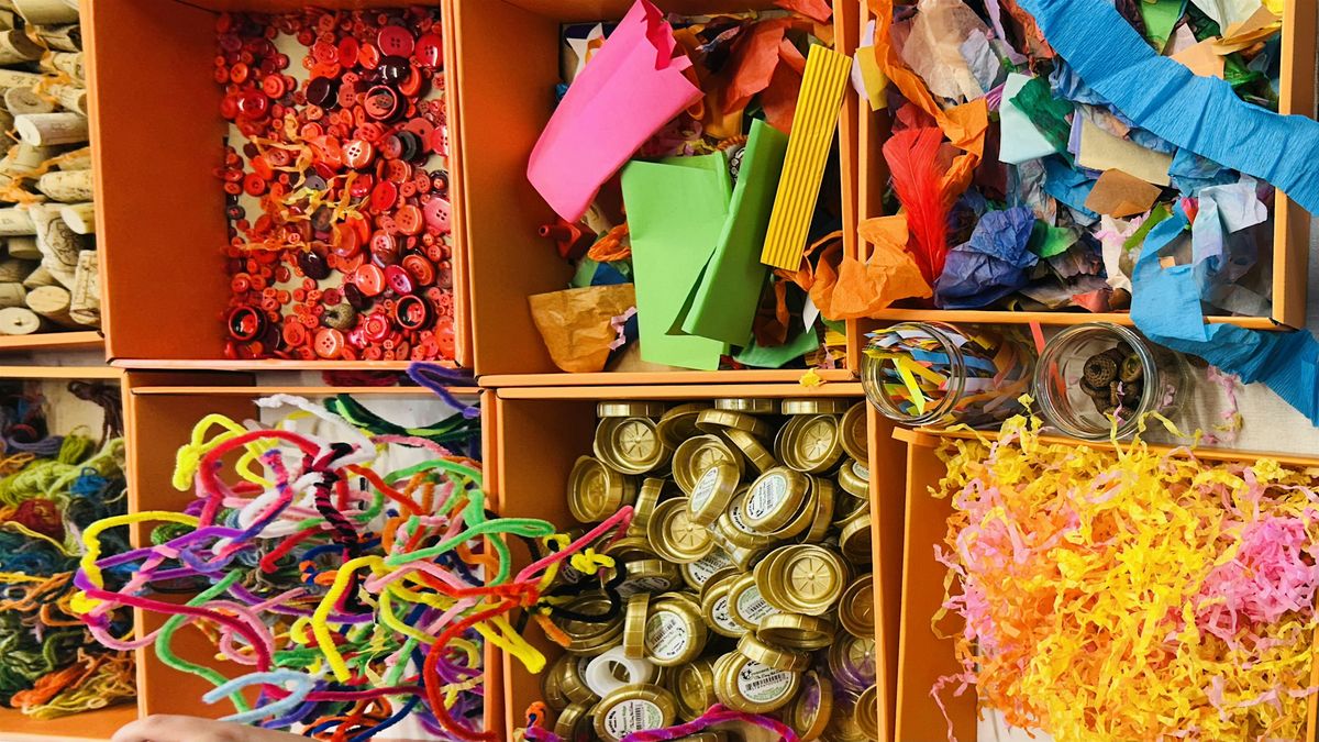 Drop in during regular open hours (Wed-Fri 12-6 and Sat/Sun 10-4) to experiment & play at The Chaos Tables - our DIY studio area stocked with recycled art supplies and upcycle-ables! We have two large tables that can seat about a dozen people - for just $5/person, you'll have access to the supplies out on the table, plus all kinds of reusable materials and tools on the red shelves and wooden shelves just next to the tables. Hot glue available upon request (and with adult supervision!)