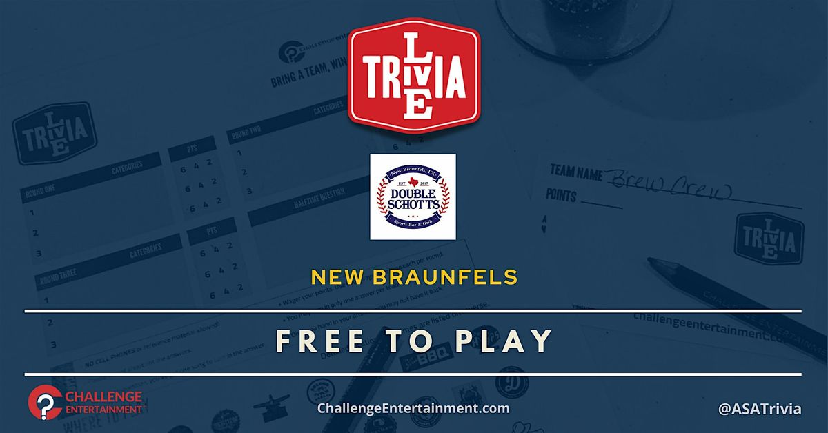 #Free Double Schotts Sports Bar & Grill #TriviaInNewBraunfels #TuesdayTrivia #WhatToDoTonight #YourThirdSpace
