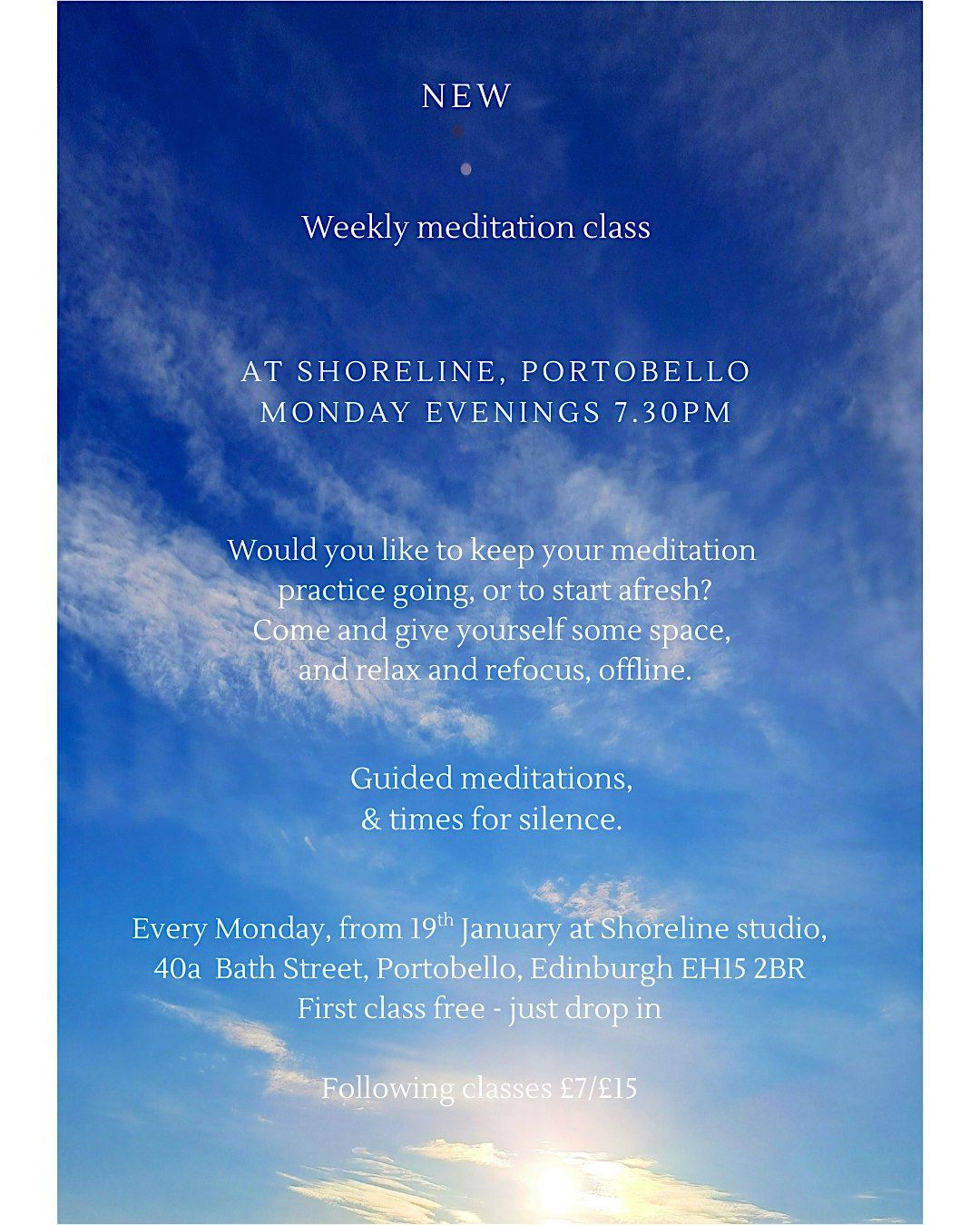 Welcome to our Weekly Monday meditation at Shoreline Porty! Join us in person in this small, friendly, relaxed group. Each Monday evening , Clunie will lead a series of guided mindfulness meditations. There will also be times in silence, and some opportunity for gentle stretching. Half way through tea will be served as a part of the meditation.