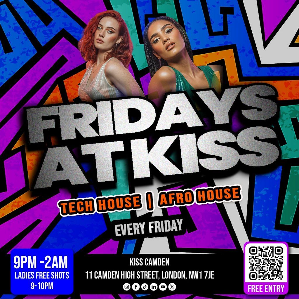 Tech House & Afro House and more every Friday at KISS Camden. Free shots for ladies 9PM to 10PM. Arrive early to avoid disappointment.