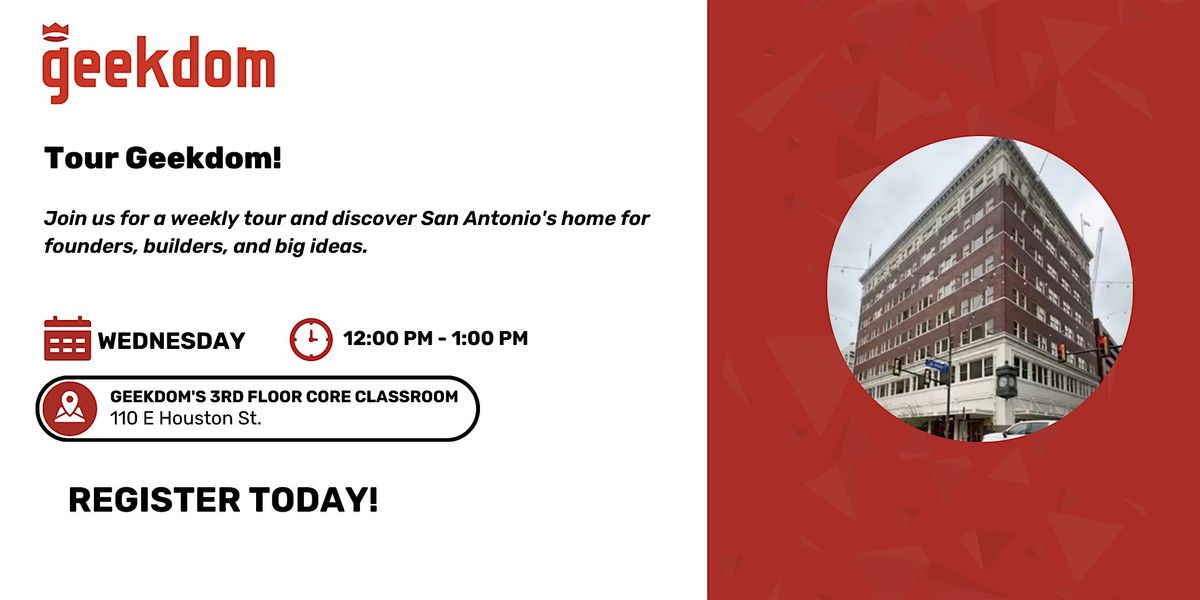 Our weekly group tours are the best way to experience the space, meet our team, and see how Geekdom can support your next chapter.