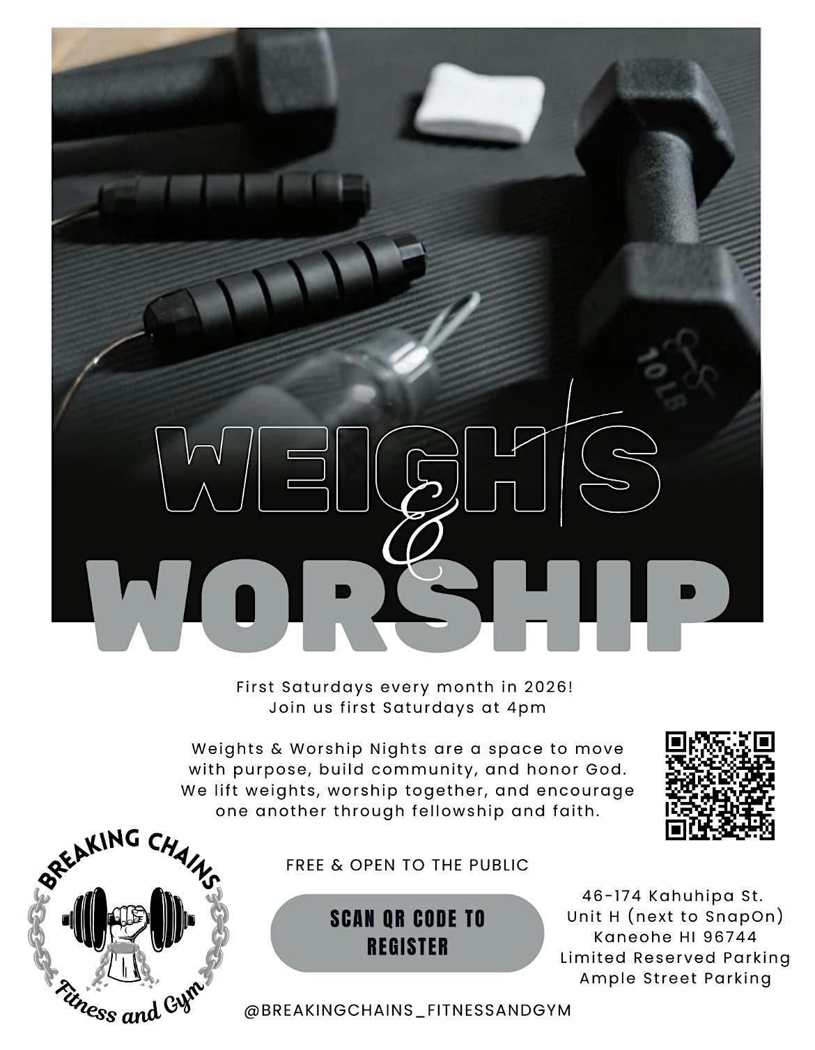Join us for Weights and Worship – lift spirits and weights together with good vibes and great tunes!About this Event