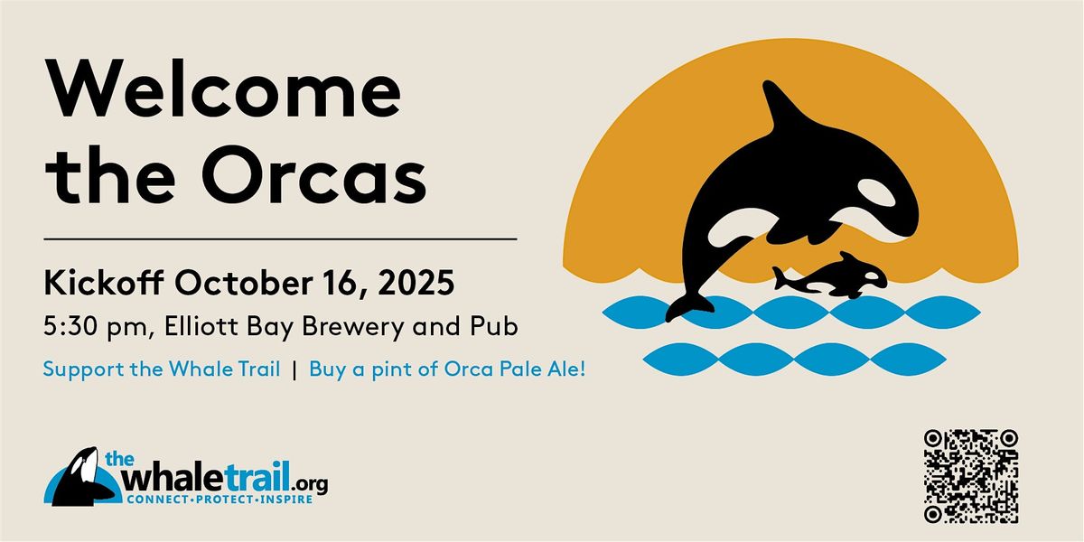 We are thrilled to have you join us at Elliott Bay Brewing - West Seattle for a night of fun, food, and festivities. Get ready to celebrate the seasonal return of the endangered southern residents to central Puget Sound. $1 from each pint of Elliott Bay Brewery's Orca Pale Ale will be donated to The Whale Trail to support our ongoing work.