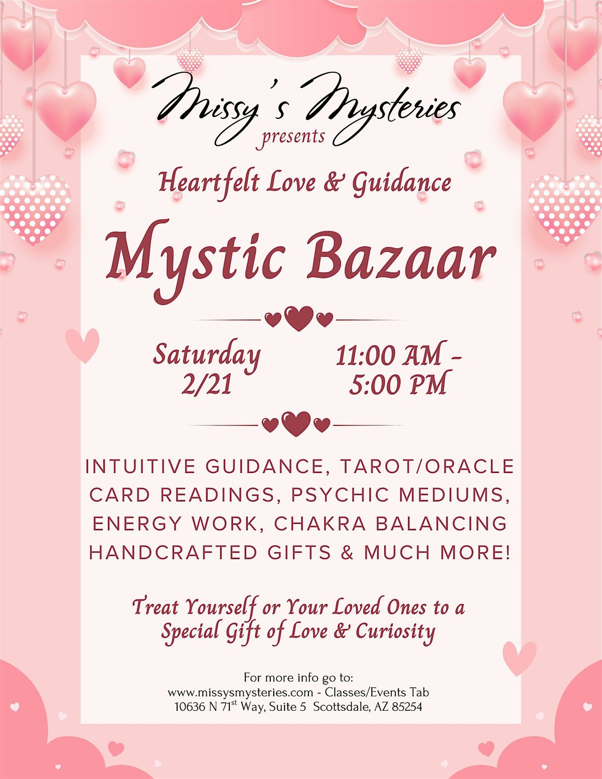 Come join us at Missy's Mysteries for a magical experience like no other! Explore our shared 'New Consciousness' world of love, intention, personal and spiritual growth.