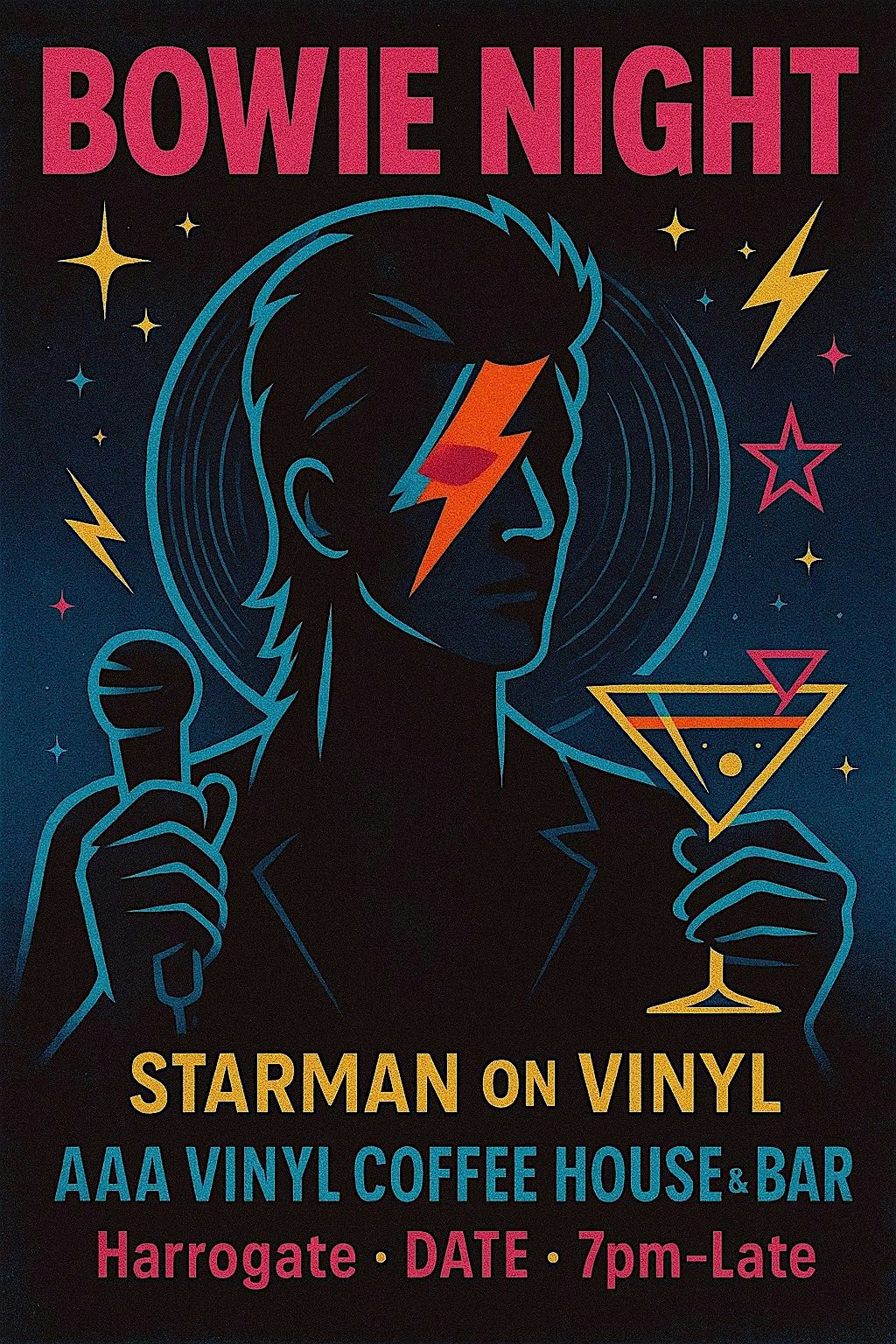 I’m dusting off the glitter and tuning the room for Bowie Night — a kaleidoscope of Ziggy Stardust, Thin White Duke, Berlin-era synth sorcer