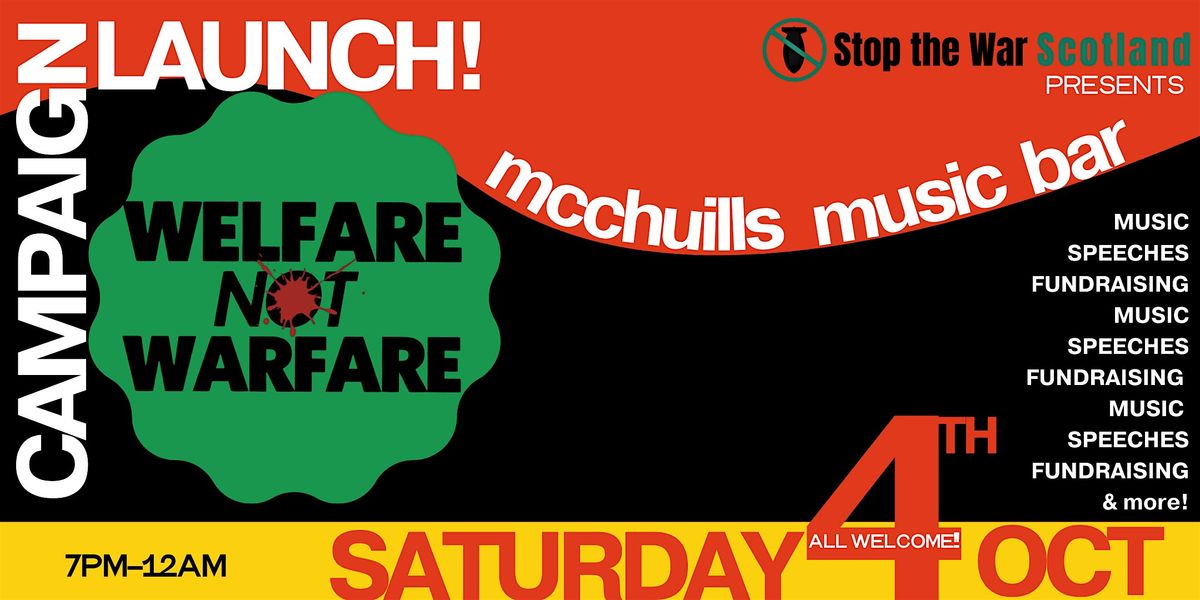 On Saturday the 4th of October we launch the Welfare Not Warfare campaign in Scotland. Join us at McChuills as we kick off the campaign. Enjoy an evening of music (with special guest bands!), relax, hear some speeches, meet new people, and find out about the campaign.