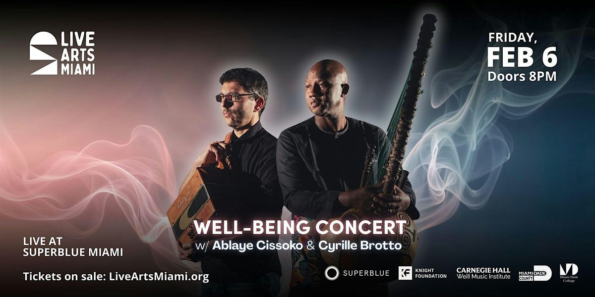 On Friday, February 6, enjoy a Well-Being Concert featuring internationally acclaimed musicians Ablaye Cissoko and Cyrille Brotto.