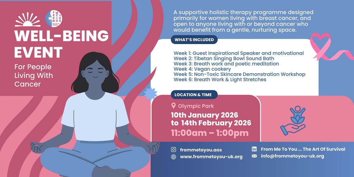 Free workshops for individuals affected by breast cancer and other cancers. Priority is offered to people from the global majority, while remaining open to all participants.