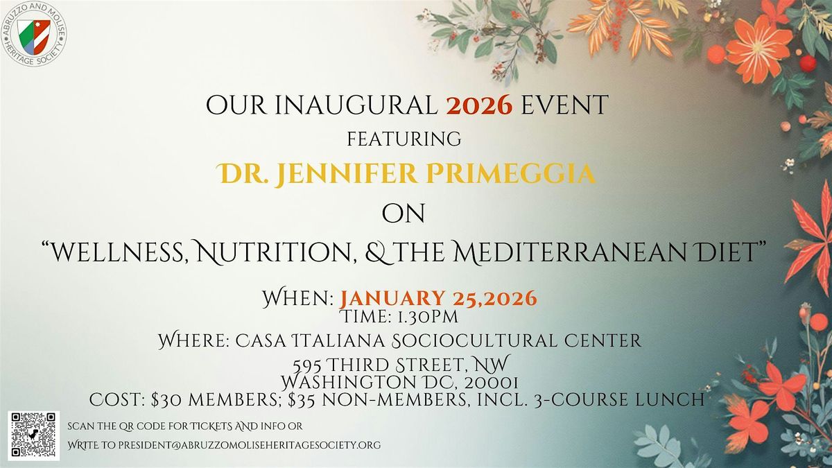 Our first event of 2026 will be about our food and culture! We will be featuring Dr. Jennifer Primeggia, an infectious disease specialist practicing in Arlington. She will give us a presentation on the Mediterranean Diet, in particular regarding nutrition and the immune system with a focus on inflammation and the benefits of the Mediterranean Diet.