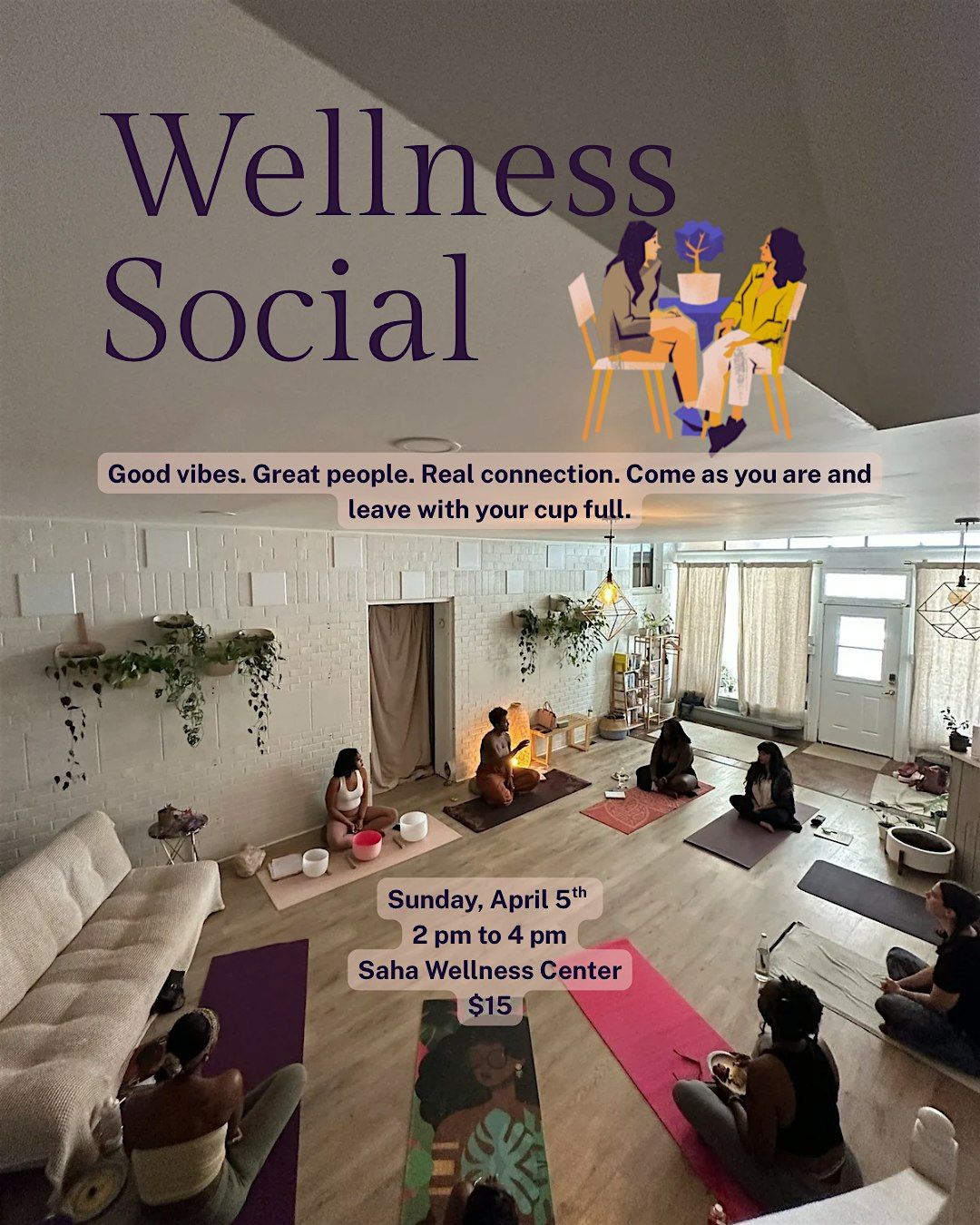The Wellness Social is a relaxed, intentional gathering where wellness entrepreneurs can exhale, connect, and be in community with people who truly get it.