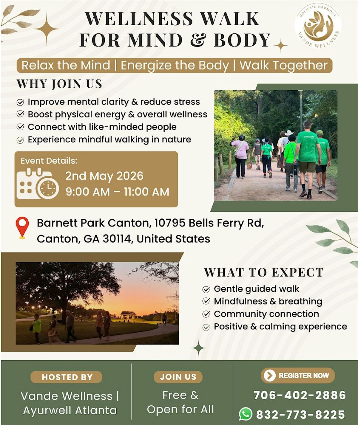 Join our Wellness Walk, led by Ayurveda Practitioner Aarti Parimal from Ayurwell Atlanta, featuring teachings on holistic well-being, pranayama (breathwork), and a guided meditation. This experience is designed for all ages and fitness levels.