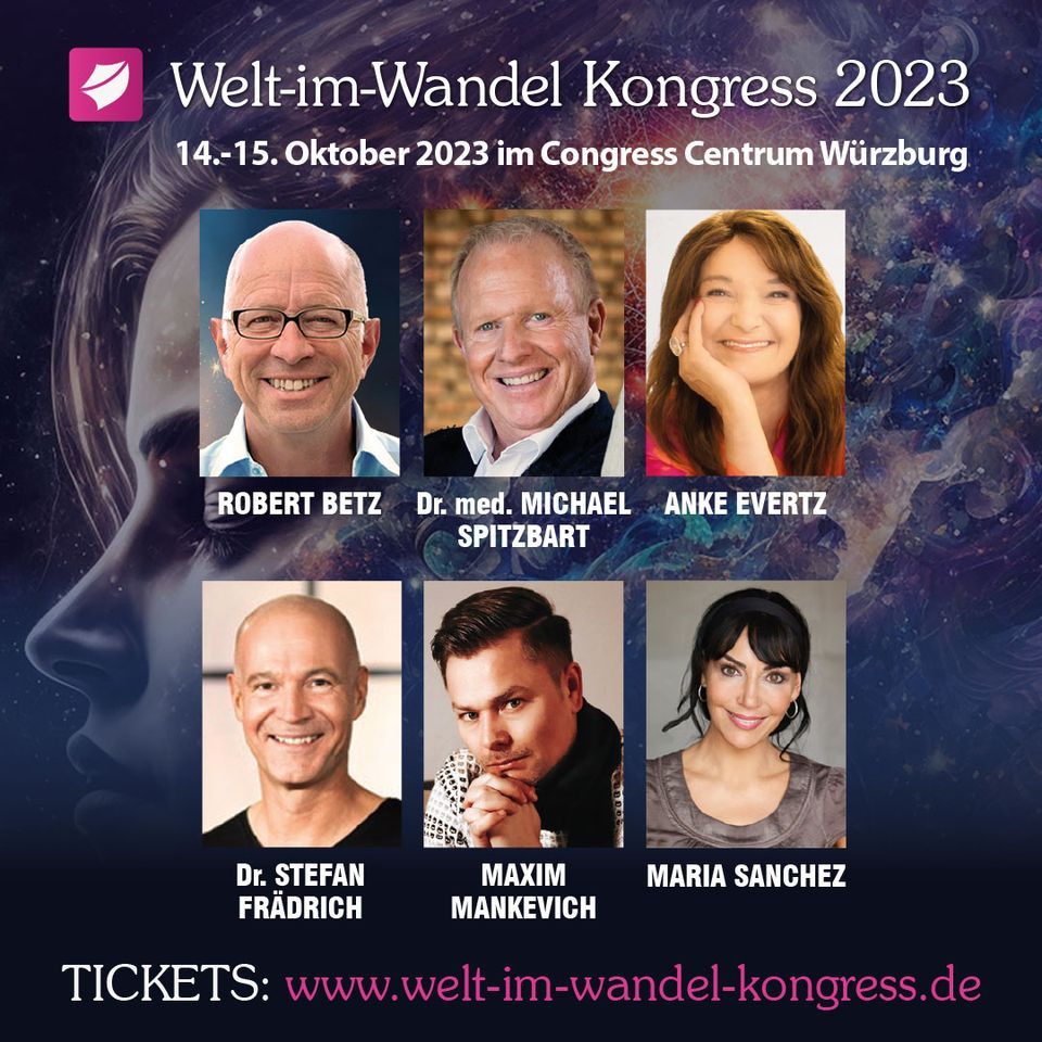 Es ist soweit: Am 14. und 15. Oktober 2023 findet der Welt im Wandel – Kongress bereits zum 5. Mal im Congress Centrum Würzburg statt. Wir freuen uns bei diesem Leitkongress für Bewusstseinsentwicklung & Lebensfreude auf Begegnungen mit besonderen Menschen.Folgende Top-Referenten sind diesmal mit dabei: