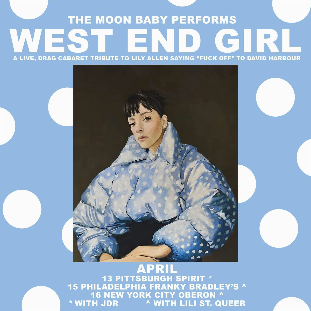 he Moon Baby and Lili St. Queer return to Franky Bradley’s for a live, irreverent cabaret playing Lily Allen’s masterpiece “West End Girl” i