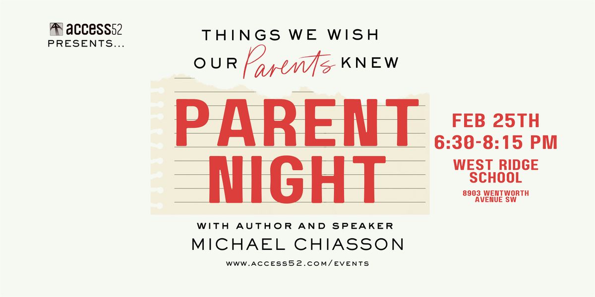 You’re invited to an evening for parents with Michael Chiasson, speaker and international bestselling author of Things We Wish Our Parents Knew.