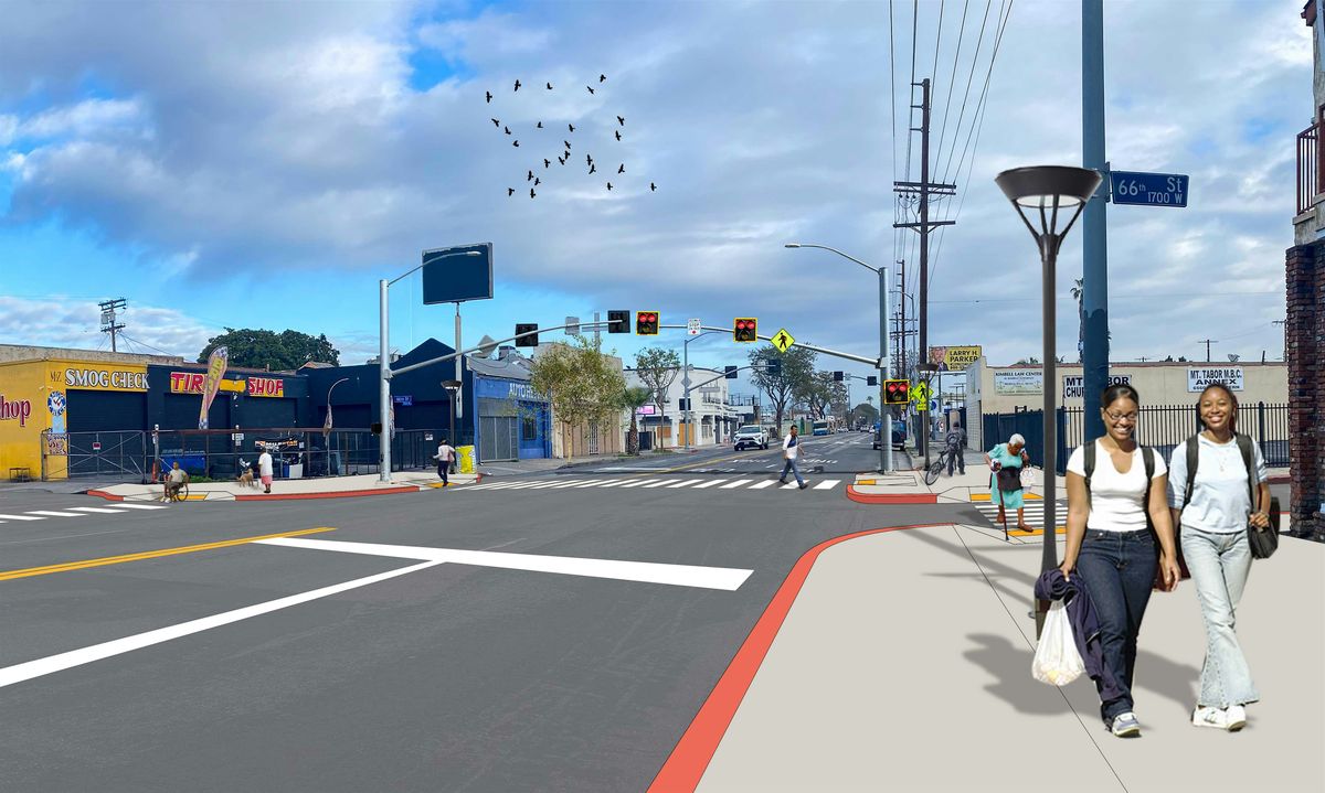 The project will transform 11.76 miles of streets in the heart of South Los Angeles with a focus on 4.5 miles of pedestrian and transit rider improvements on the Western Avenue corridor from Martin Luther King Jr. Blvd to the north, intersecting the 10-mile east-west Metro Rail-to-Rail Active Transportation Corridor at Slauson Avenue and continuing south to Century Blvd. Adjacent local streets, Denker Avenue, two blocks to the east, and Gramercy Avenue, two blocks to the west, will be transformed into critically needed neighborhood bike network streets with traffic calming.