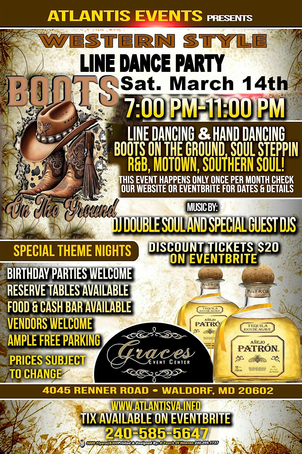Grown & Sexy Western Style Line Dance. Come get your groove on while having a great time with friends. Get ready for plenty of Line Dancing and Hand Dancing at Graces Event Center featuring DJ Double O Soul.