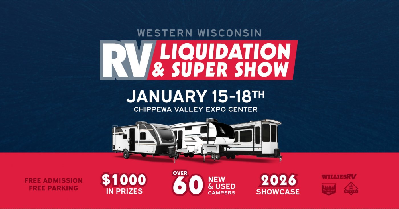 Gear up for camping season at the 2026 Western Wisconsin RV Liquidation & Super Show! Take advantage of massive savings on new and used campers, and a first look at 2026 Models. Plus, enjoy free storage until spring* when you purchase at the show. Find the best deals of the year on new and used travel trailers, fifth wheels, and destination trailers! Attendees and their families can enjoy free admission and a chance to win over $1000 in prizes.
