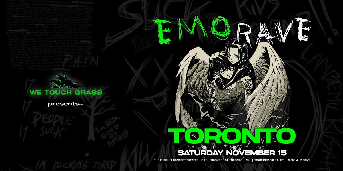 Join us for #WeTouchGrass first Emo Rave in Toronto on Saturday, November 15. Lose yourself with a non-stop set of heart-wrenching emo, pop-punk, and alternative anthems—completely remixed and edited for full-tilt moshing—curated, created, and performed by Alex Kade himself.