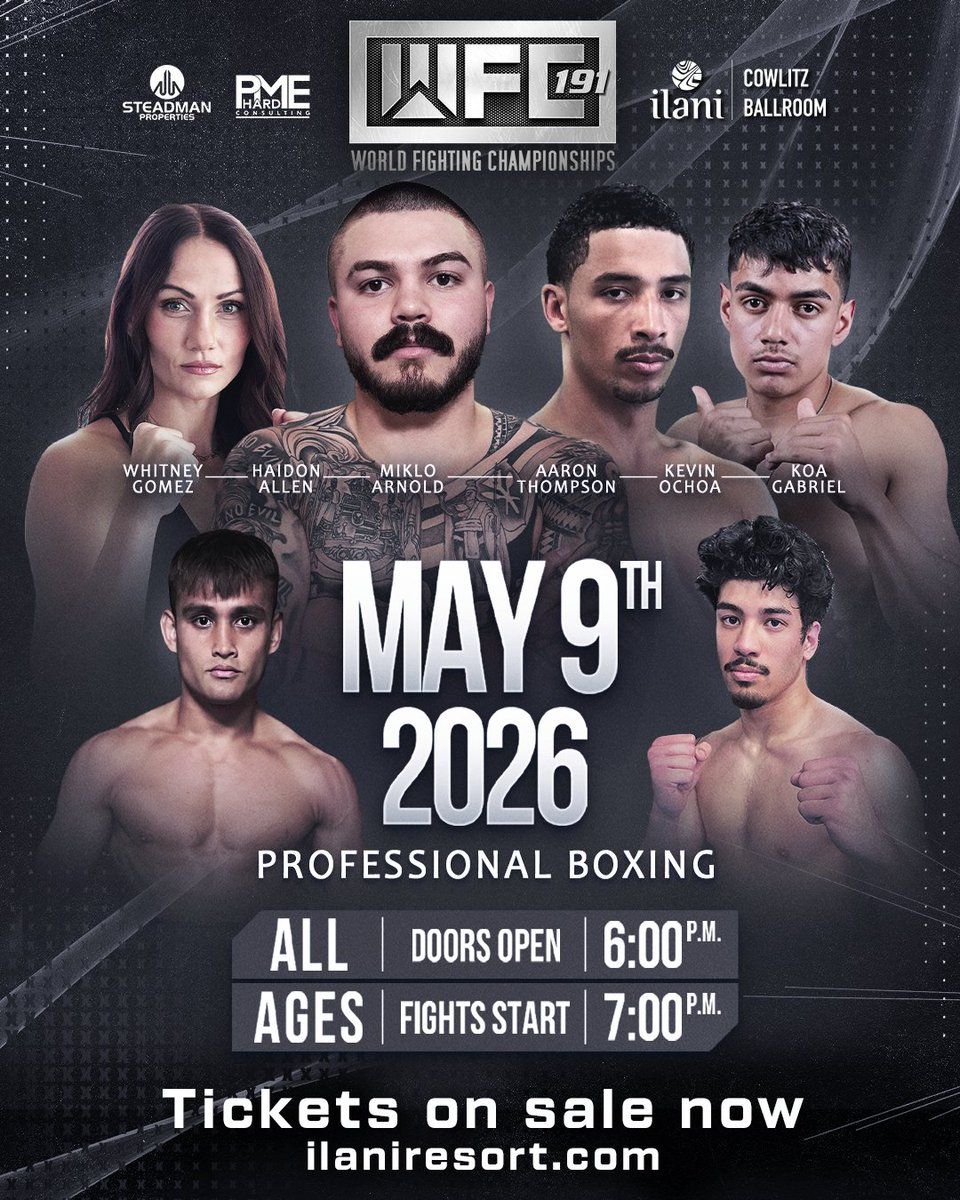 π Be part of history at WFC 191 at Ilani Casino Resort, an extraordinary gathering that will captivate your imagination! ποΈ The prestigious Ilani Casino Resort in Ridgefield, WA sets the stage for an unforgettable experience on May 9th, 2026 at 07:00 PM. β¨ They are bringing together the finest elements of entertainment and innovation to create moments that will take your breath away. From the moment you arrive, you'll be immersed in an atmosphere of wonder and excitement. π― This carefully planned event ensures every guest experiences something truly special. π Early booking is recommended for this must-attend event of the season!