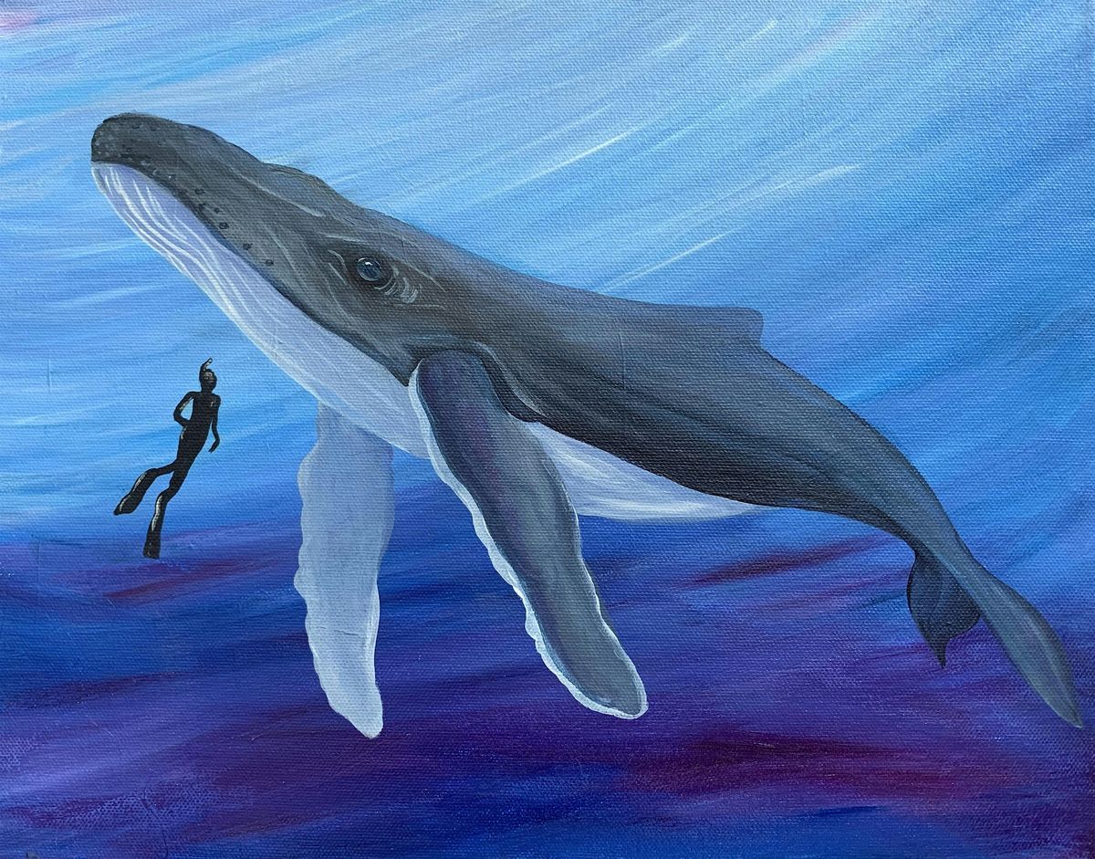 Dive into creativity at Deep Sea Tasting Room as we paint a breathtaking underwater scene featuring a majestic humpback whale and a peaceful diver drifting through the deep blue. This acrylic paint party blends ocean wonder with artistic exploration for a relaxing and inspiring evening.