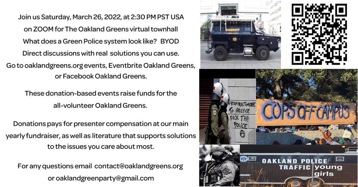 Go to oaklandgreens.org events, Eventbrite Oakland Greens, or Facebook Oakland Greens.