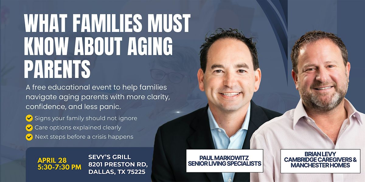 Navigating the needs of aging parents can feel overwhelming, especially when families are forced to make important decisions quickly and under stress. This free educational event is designed to help you get ahead of those moments with practical guidance, expert insight, and a better understanding of the options available before a crisis happens.