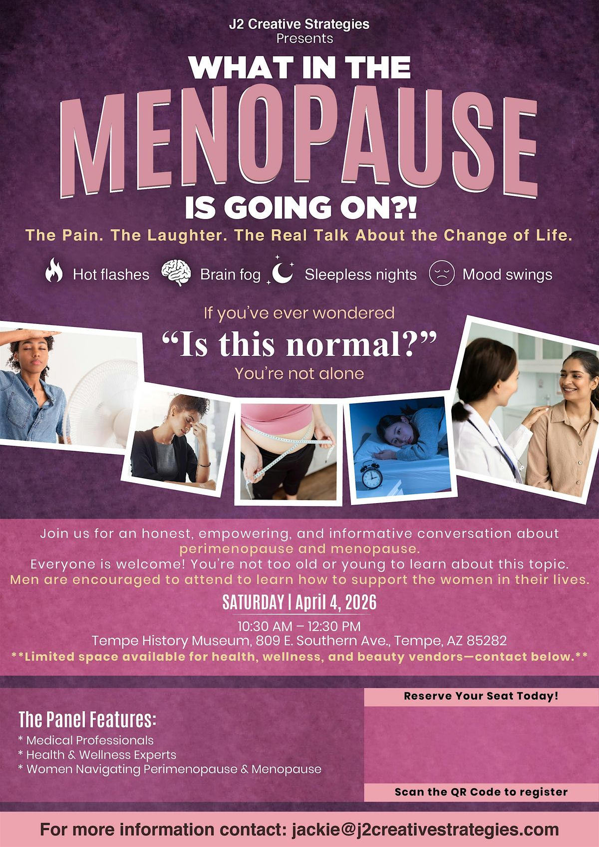 In addition to the panel discussion, guests will have the opportunity to connect with health, wellness, and beauty vendors offering resources and services to support women during midlife and beyond.