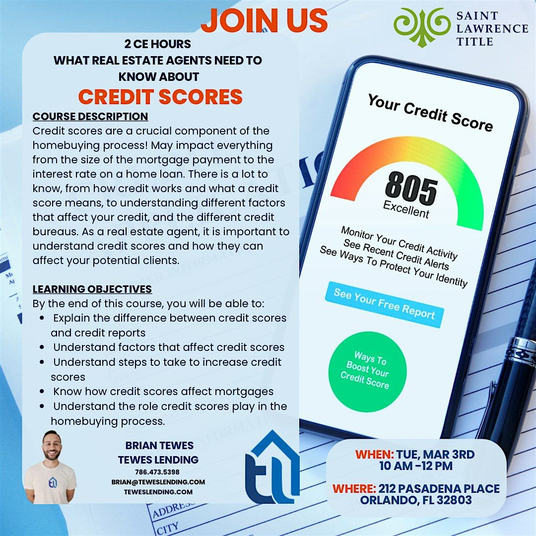 Credit scores are a crucial component of the home buying process! Join us at Saint Lawrence Title on 3/3/26 at 10am for a 2 hr. CE class.
