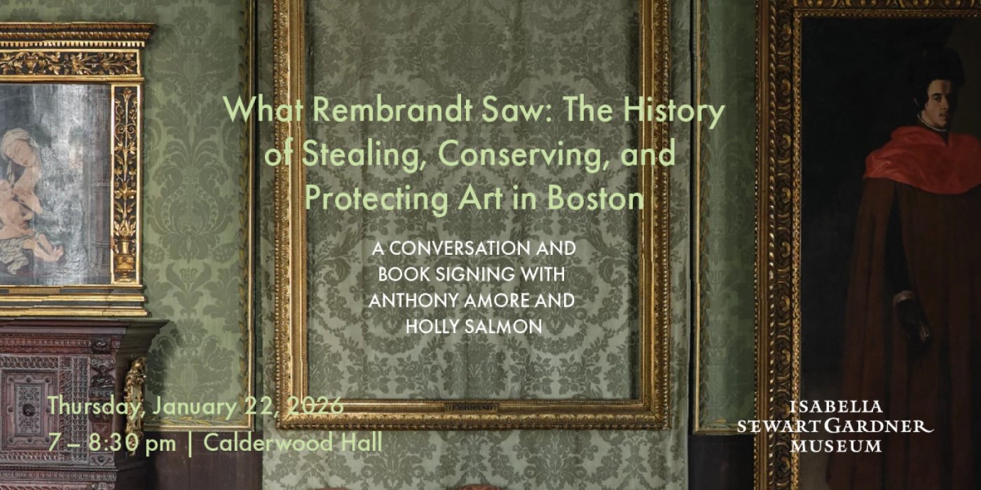Anthony Amore, the Gardner Museum’s Director of Security and Chief Investigator, has spent the last two decades safeguarding the Museum’s collection of great historic and cultural value. As one of the world’s leading art crime experts, he has also authored numerous books on the subject of art theft. Holly Salmon, John L. and Susan K. Gardner Director of Conservation, has likewise dedicated over 20 years to the care and wellbeing of Isabella’s acquired objects, conserving the works for the “education and enjoyment of the public forever.” With unique perspectives to share on the story of the Dutch Room, the empty frames, and the stolen artworks, Anthony and Holly will discuss the Gardner’s place in the history of art crime, the history of the Dutch Room, and why thieves target the work of Rembrandt, one of the world’s most stolen artists.