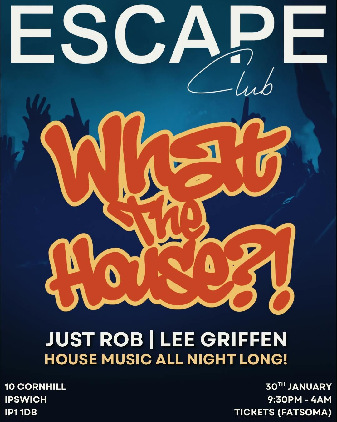 After their debut on New Yearโs Eve, What The House? returns on the 30th of January with another carefully curated showcase at Escape Club.Again together Just Rob and Lee Griffen for an extended house music all night long journey, delivering the kind of energy that defines the What The House? movement.