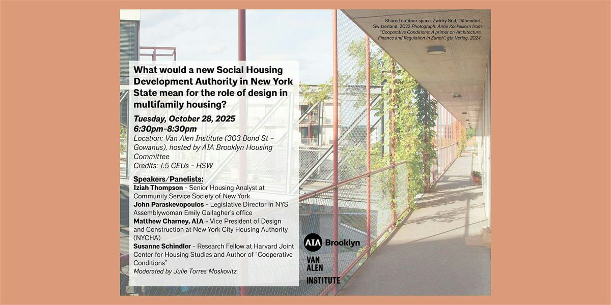What if New York reimagined how housing gets built—putting public good and great design on equal footing? This conversation explores what a new Social Housing Development Authority could mean for architects working in multifamily housing. Hear from Susanne Schindler (Harvard Joint Center for Housing Studies), John Paraskevopoulos (NYS Legislative Director), Iziah Thompson (Senior Housing Analysist at Community Service Society of New York), and Matthew Charney, AIA (VP of Design & Construction at NYCHA), as they unpack how new public frameworks could expand design’s role in shaping more equitable, sustainable housing across the state.