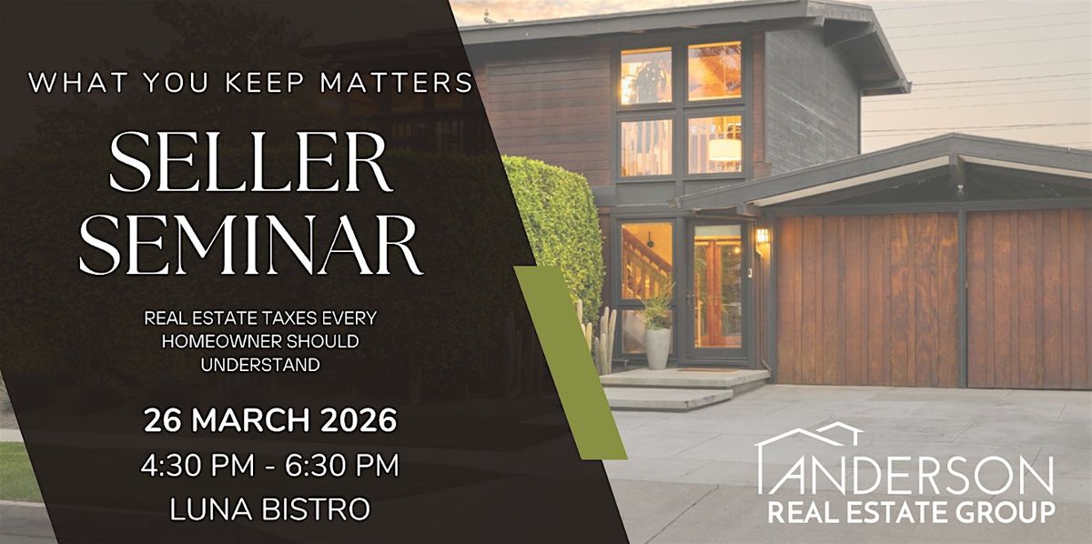 Welcome to What You Keep Matters: Taxes Every Home Owner & Seller Should Understand event! Join us at LUNA Bistro & Cafe on March 26, 2026 at 4:30 PM (Pacific Time) to learn about essential tax information for homeowners and sellers. Whether you’re building long-term wealth through real estate, planning your next move, or simply looking to make more informed financial choices, this event will provide valuable insights to help you confidently navigate the tax implications of homeownership. We’ll cover key strategies, potential deductions, capital gains considerations, and important updates that could impact your bottom line.