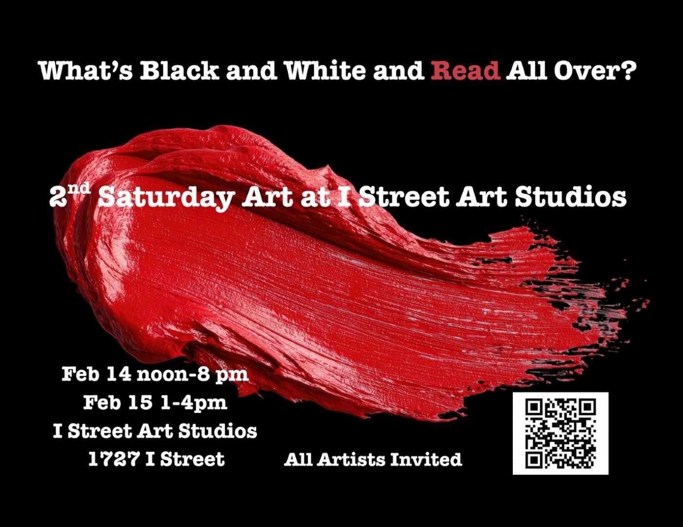 What’s Black and White and Red All Over??? Find out Feb 14-15 at I Street Art Studios!