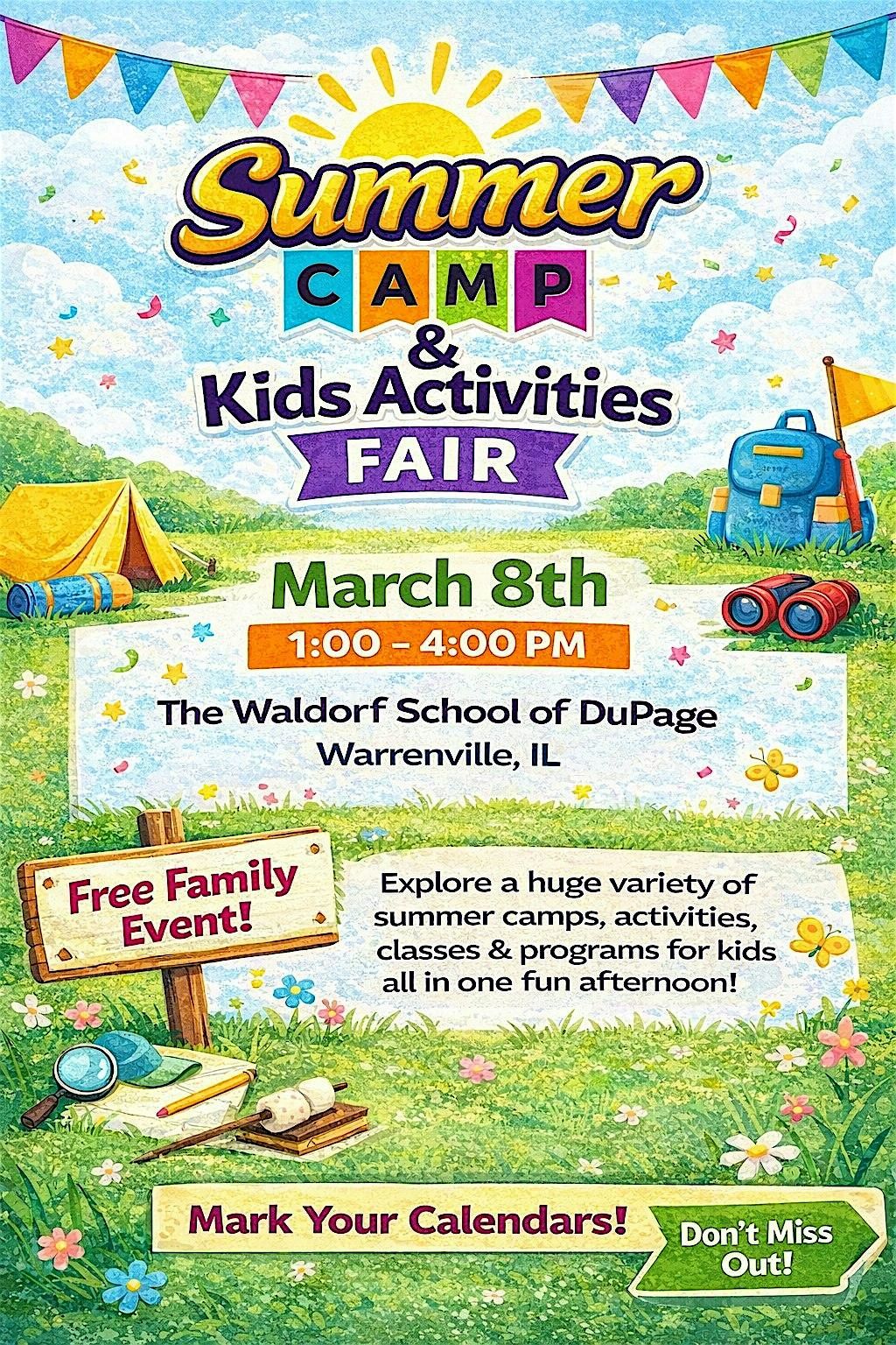 Join us at The Waldorf School of DuPage from 1:00-4:00 PM on March 8, 2026 to explore local Summer Camp offerings & providers of fun summer activities around Wheaton, IL and the surrounding suburbs!