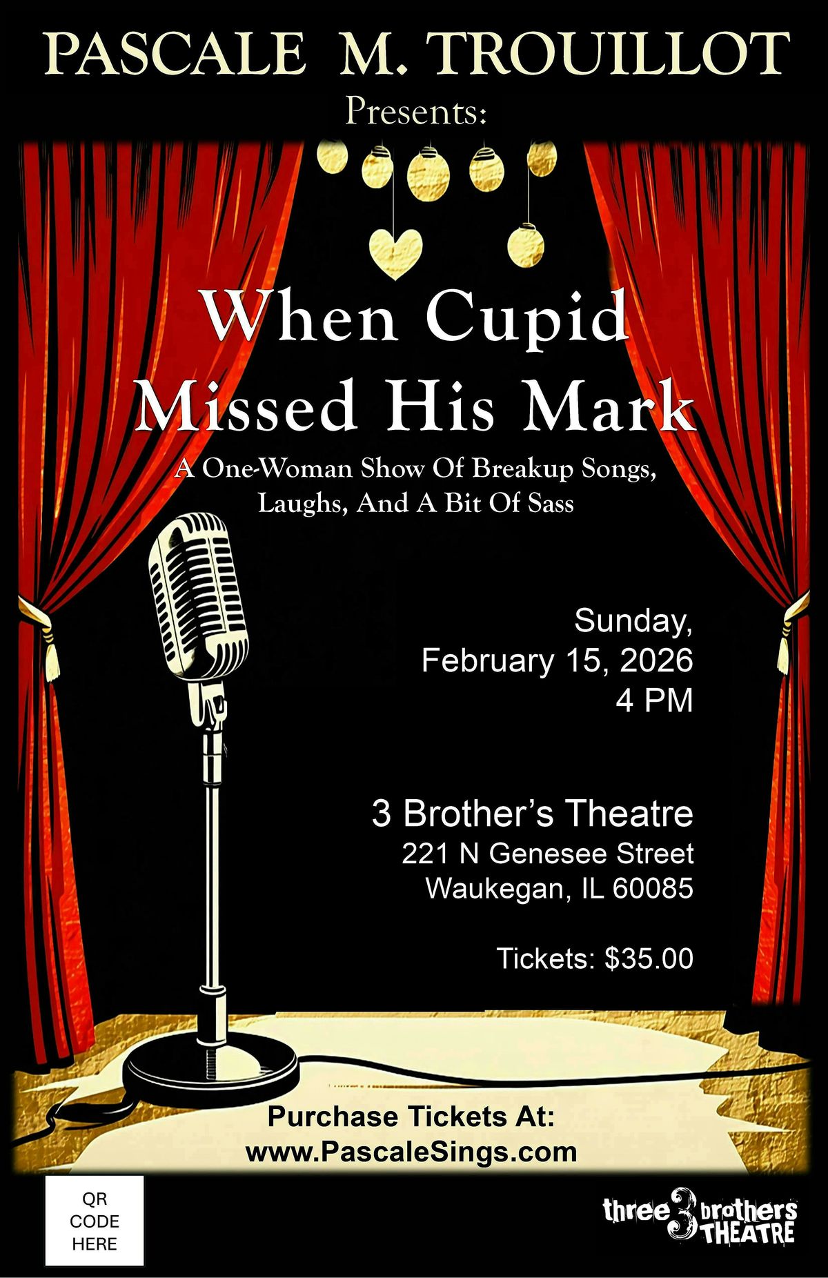Pascale M. Trouillot presents When Cupid Missed His Mark: A one-woman show of breakup songs, laughs, and a bit of sass. With an eclectic blend of music ranging from showtunes to pop standards, Pascale will delight us with a performance even Cupid would admire. Featuring an acoustic quartet, this show will have you singing along to some of your favorite classics. You don’t want to miss this one performance event!