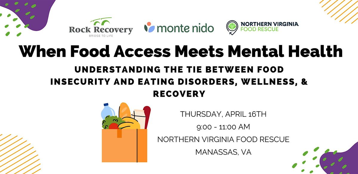 Join Rock Recovery and Northern Virginia Food Rescue for a morning of learning, conversation, and connection as we explore the intersection of food access, mental health, and eating disorders. This event will bring together community stakeholders and mental health providers to better understand how barriers to food access can lead to disordered eating patterns.