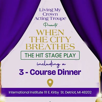 Experience the captivating stage play, When The City Breathes while indulging on a delicious 3-Course Meal at the International Institute of Metropolitan Detroit! Get ready for an unforgettable evening with two shows:
