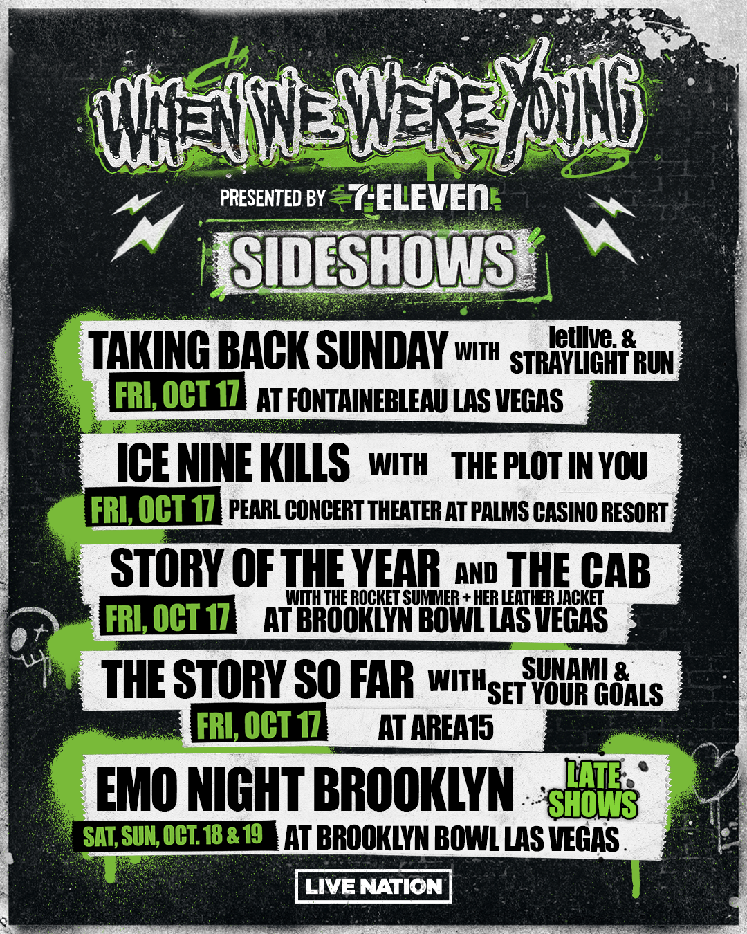 ✨ Discover the extraordinary at When We Were Young Sideshow - Emo Night Brooklyn at Brooklyn Bowl - Las Vegas, where magic meets reality in ways you've never imagined! 🏛️ Set in Brooklyn Bowl - Las Vegas nestled in bustling Las Vegas, NV, this event promises to be a landmark occasion. 📅 Taking place on October 19th, 2025 at 11:00 PM, it's going to create an atmosphere where every moment becomes a cherished memory. 🌟 Immerse yourself in an experience crafted with attention to every detail, designed to surprise and delight at every turn. They have worked tirelessly to ensure this event exceeds all expectations, bringing together elements of entertainment, innovation, and pure joy. 🎊 Don't miss your chance to be part of this remarkable journey!