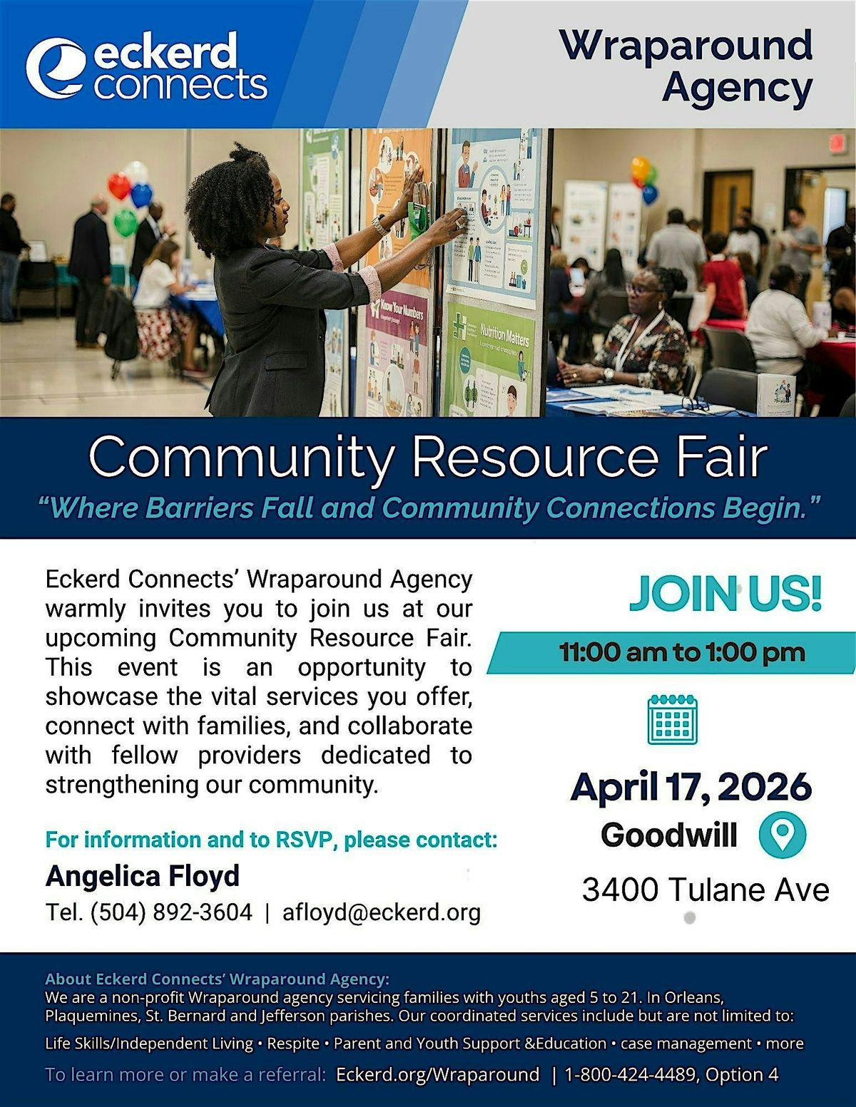 Join Eckerd Connects in person for an inspiring event where barriers break down and real community connections take root. It's all about coming together, sharing stories, and building bridges in a relaxed, welcoming space. Provider, parents, teachers, all community advocates welcome to learn more about wraparound and see what resources are available to youth and their families.