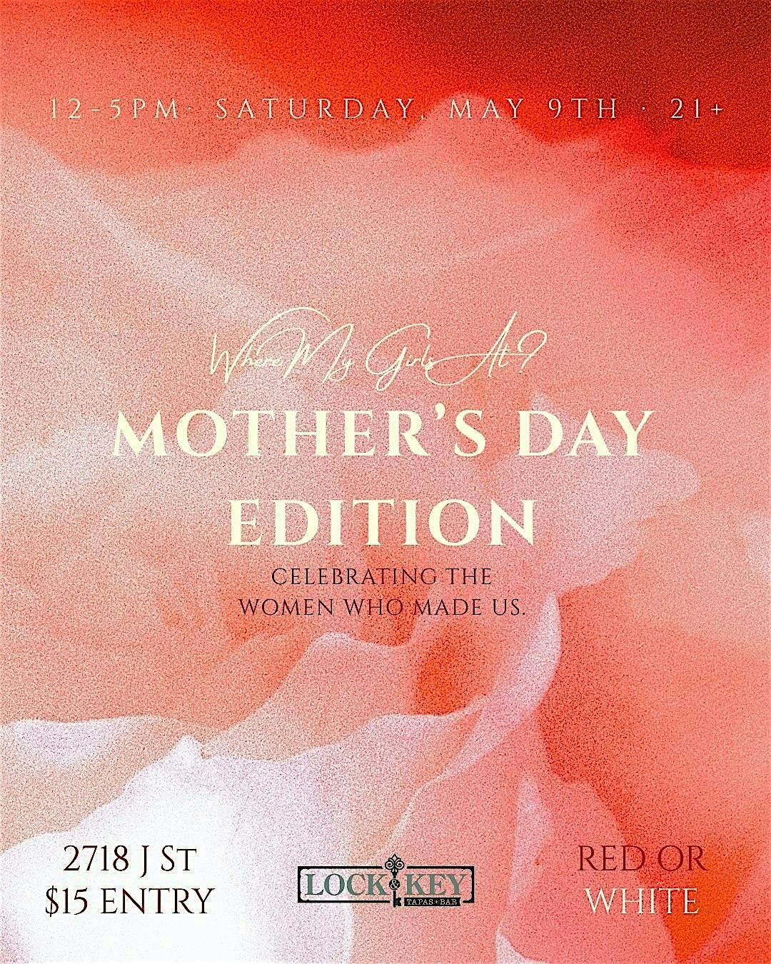 Celebrate your Mother's Day weekend with us at Lock & Key — Saturday, May 9th. It is a day party for the moms, the aunties, the sisters, and every woman who deserves to be celebrated out loud. From 12 to 2 PM enjoy tapas-style shareable plates, then at 2 PM the floor opens for a full DJ set with surprise moments you don't want to miss. Table and booth packages include reserved seating — dress code is red or white encouraged. Grab your tickets now and come celebrate the women who made us 🌹🤍