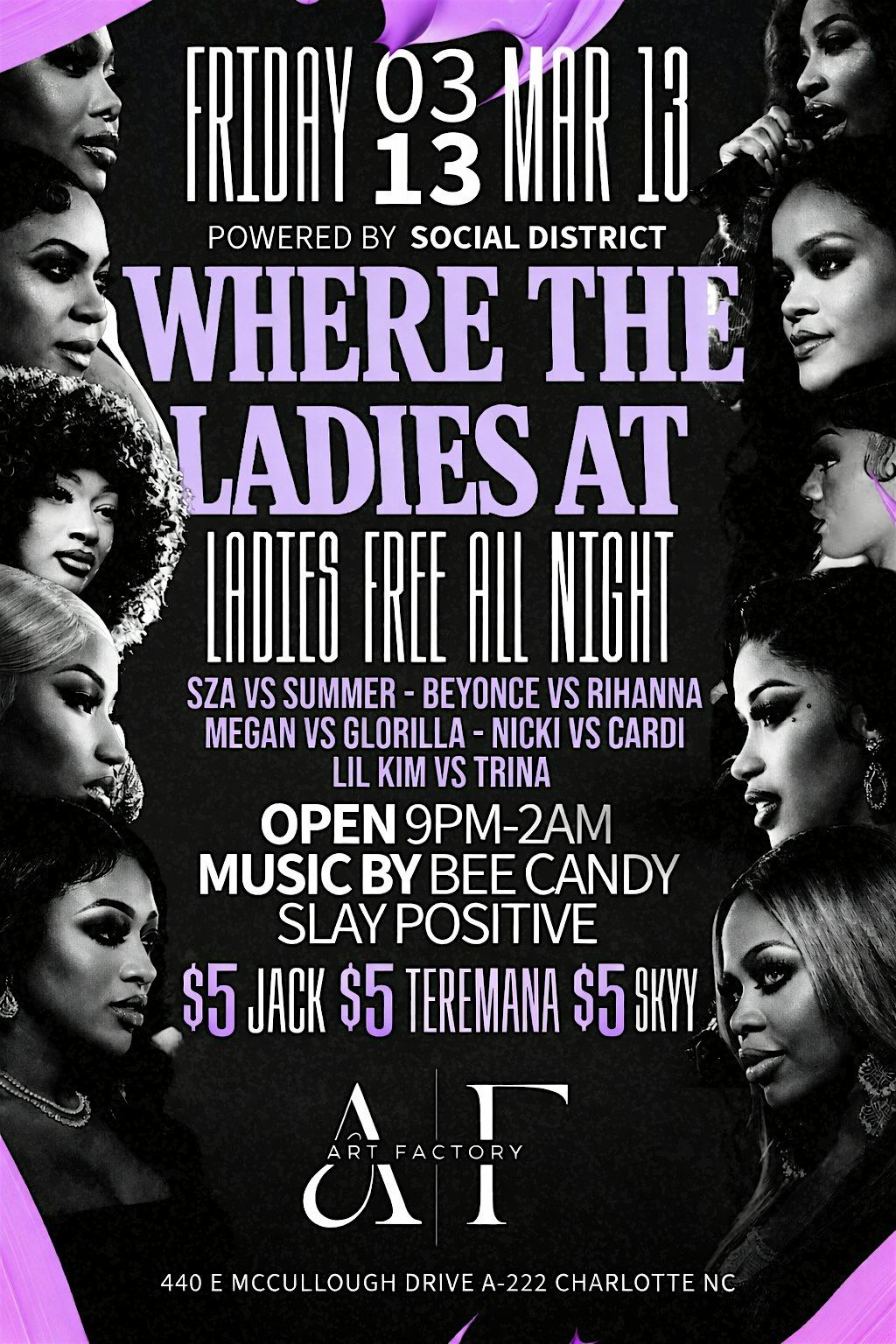 #CharlotteNightlife #WhereTheLadiesAt #LadiesNightCLT #QueenEnergy #CLTEvents #CharlotteParties #CLTAfterDark #LadiesOutside #FridayThe13thVibes