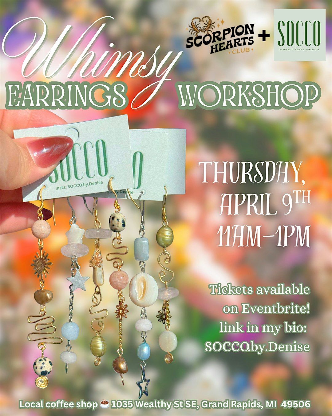 Join us on APRIL 9, 2026 at 11:00 AM (ET) for a fun and creative time at the Scorpion Hearts Club! Whether you're a beginner or just looking to add some flair to your jewelry collection, this workshop is the perfect to craft 2 pairs of your own whimsical earrings, also available in silver or gold! Bring your creativity and let's make some unique pieces together inside one of the best local coffee shops in Grand Rapids. Can't wait to see you there!