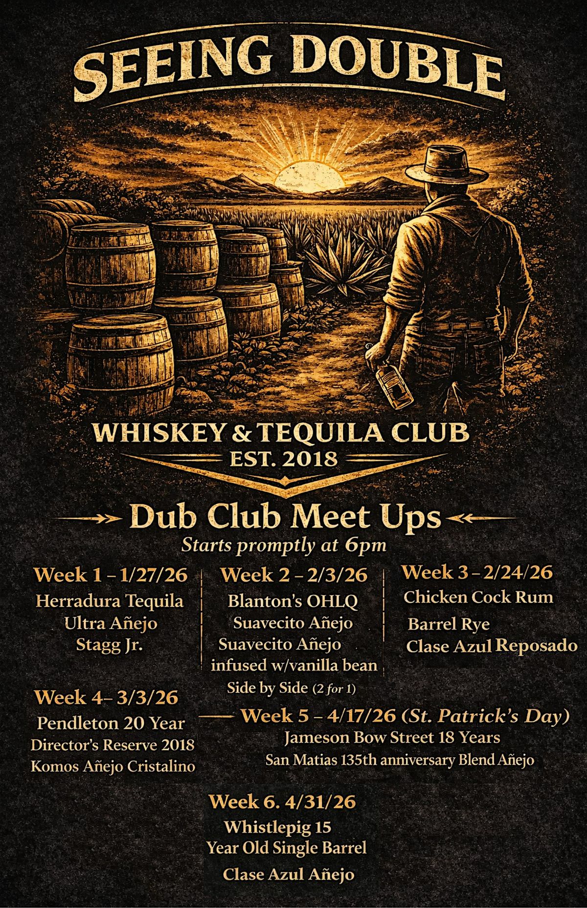 Each week features two premium pours at discounted Dub Club pricing. Try them side-by-side, talk tasting notes, and decide what’s worth the hype.