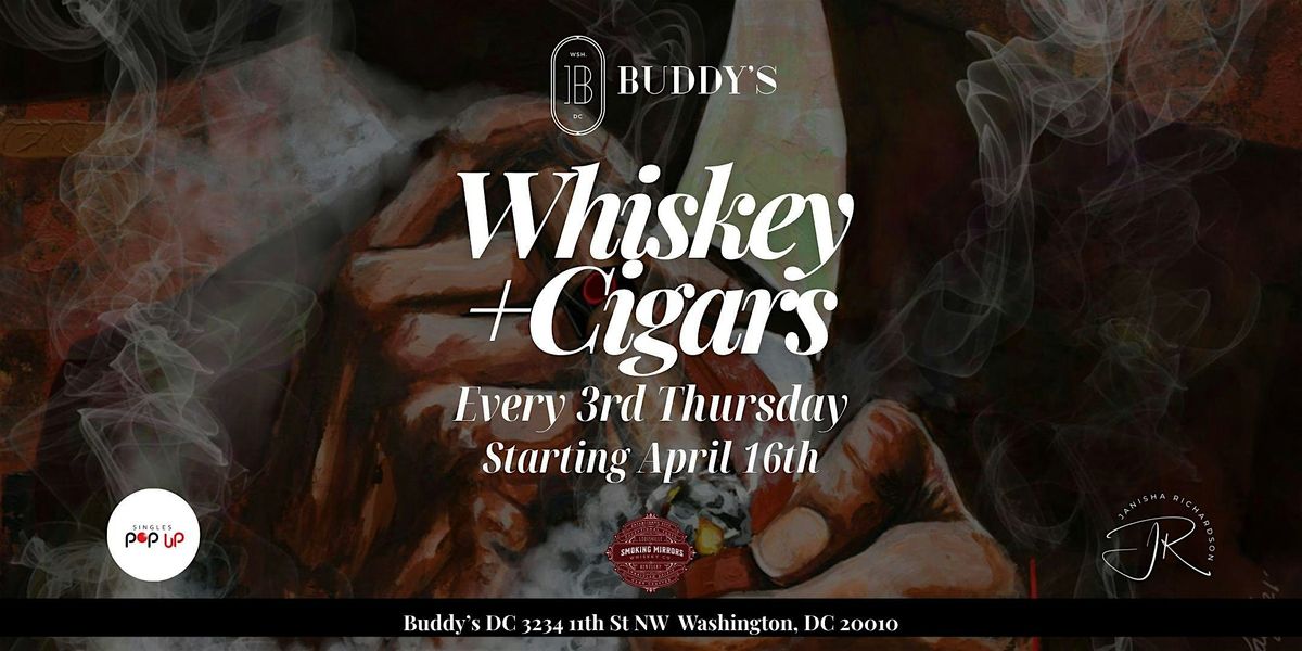 Exciting news, everyone! Janisha Richardson and Singles Pop Up are thrilled to announce that our beloved Whiskey + Cigars event is back and better than ever at our new location, Buddy's DC! Join us every 3rd Thursday of the month, starting April 16th, from 6:00 PM to 10:00 PM for an evening of smooth sips and rich aromas.