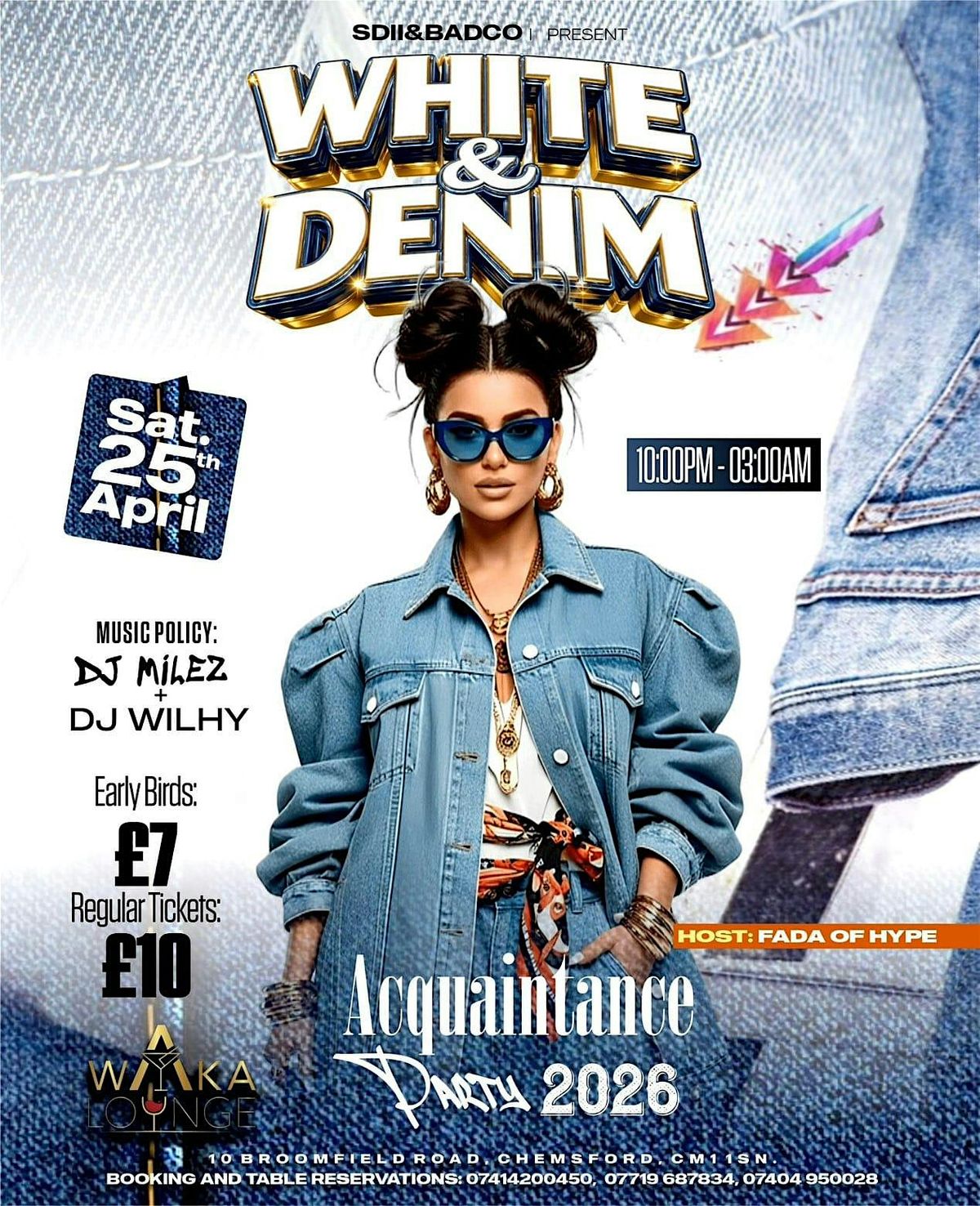 Join us at Waka Lounge on April 25, 2026 at 10:00 PM (BST) for a chill evening filled with good vibes and great company. Dress in your best white and denim, and let's make it a night to remember. Whether you’re coming to dance to DJ MILEZ tunes or just hang out with FADA_OF_HYPE himself, this is the spot to be. Don’t miss out on the fun!